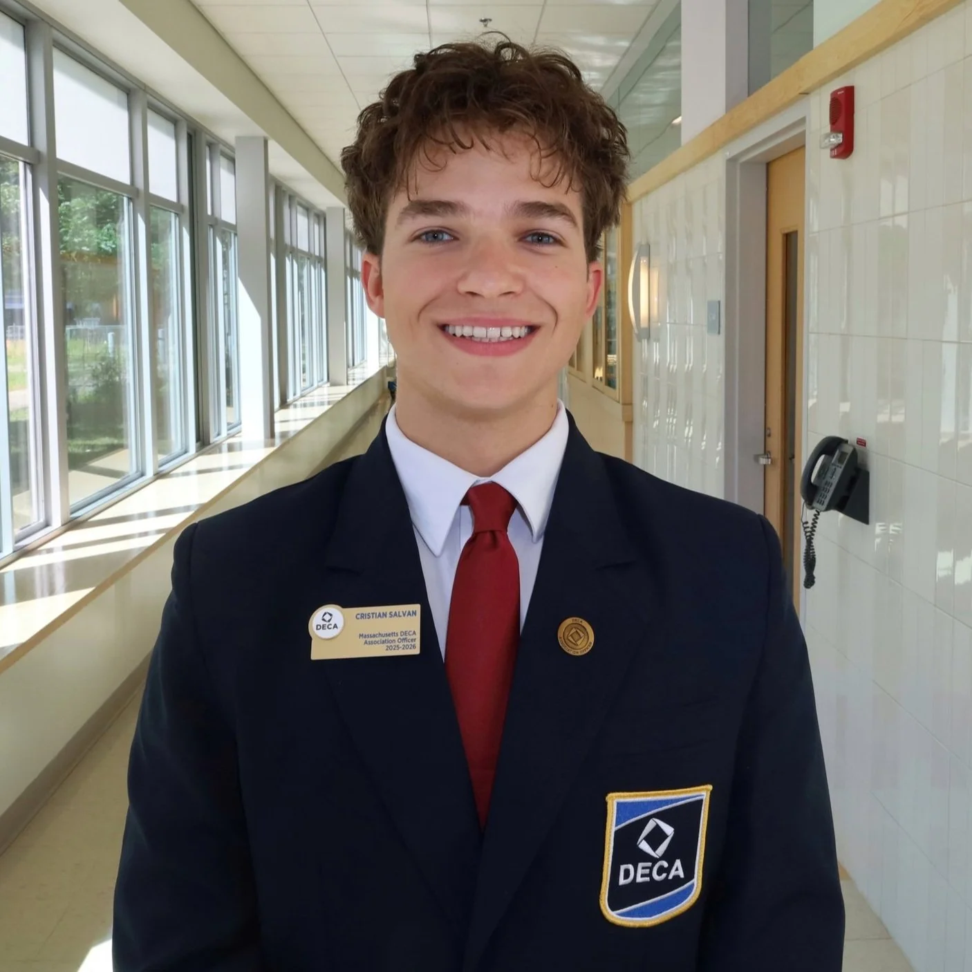 Hi, everyone! My name is Cristian Salvan, and I’m honored to serve on Massachusetts DECA’s State Action Team 67. I’m a proud third-year DECA member and the current Senior Vice President of my chapter at Shrewsbury High School, where I help lead a team of over 150 passionate members.