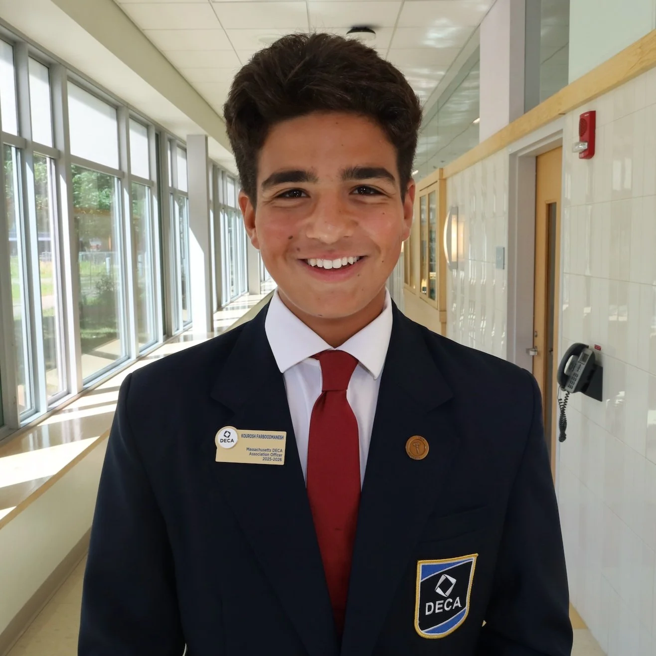 Hey Mass DECA! My name is Kourosh Farboodmanesh, and I am a senior at Wellesley High School. I joined Wellesley DECA in my sophomore year, which was also the second year of our chapter since its founding. Last year, I had the honor of serving as the Executive Vice President of my chapter. This year, I have the absolute privilege of serving as a Team 67 State Officer.