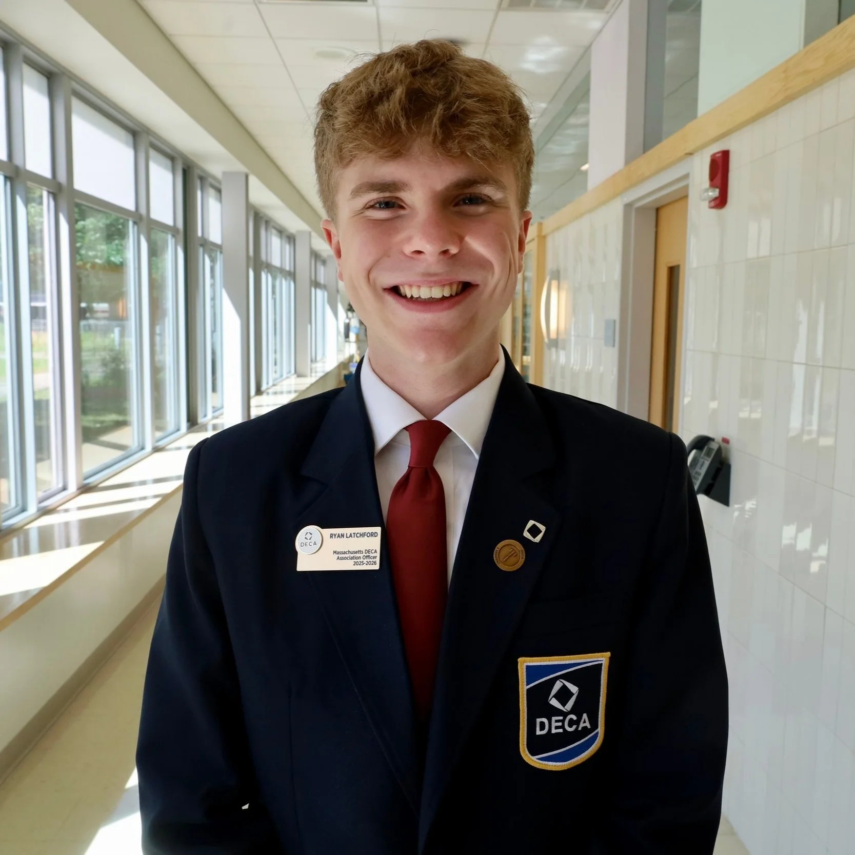 Hello everyone, my name is Ryan Latchford and I am a junior at Burlington High school. Burlington is pretty much a suburb town with a decent mall and a few nice restaurants. Other than that, it’s nothing too special. However, my life is far from normal. As the oldest of six children, I pretty much was forced into developing leadership characteristics from an early age. Dealing with siblings as annoying as mine, I also developed an immense amount of patience. If coming from a large family has taught me anything, it’s that everyone has their own ways of going about life and respecting that is the key to getting along with people. Growing up, my dad would always drive me around the town he worked in and introduce me to tons of people every day. I guess that was what made me love meeting people so much. It really is my favorite thing to do and I am tremendously grateful that DECA has given me so many opportunities to do so. Aside from that, I enjoy playing sports and going skiing with my friends. I play soccer in the fall and do track in the winter and spring. With this position, I am looking forward to continuing to get to know more people and give back to the organization that has given me so much. I will do whatever I can to contribute and make Mass DECA better than ever before. With that being said, please feel free to reach out to me and tell me what you want to see from team 67 on Instagram @deca.latch.